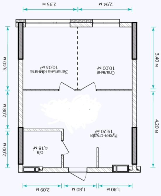 • Площа кухні 20 м2