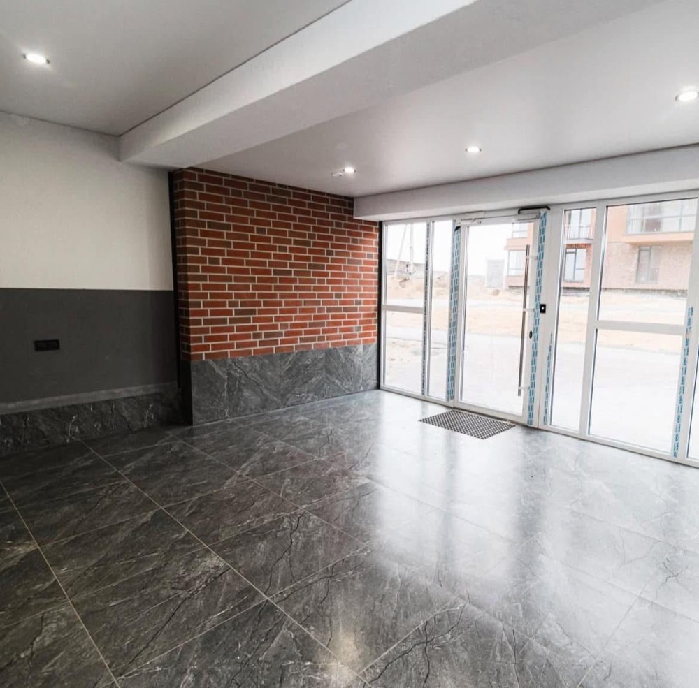 Стан після будівельних робіт — виконано чистову штукатурку, стяжку підлоги, змонтовано теплу підлогу по всій квартирі, встановлено електропроводку та виводи під сантехніку й інші інженерні системи.