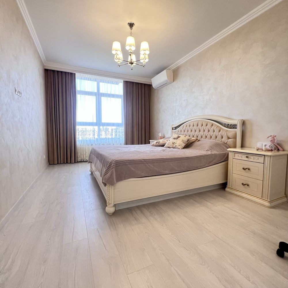 Простора світла квартира з якісним ремонтом. 2 санвузоли, 3 спальні і велика кухня студія. В квартирі є все необхідне, кондиціонери в кожній кімнаті, а також вся техніка для комфортного проживання. В будинку є консьєрж. Розвинена інфраструктура, гарна транспортна розвʼязка. Поруч Ашан (300 м), магазини, кафе, супермаркет, школи, дитячі садки. т.044 200 10 80