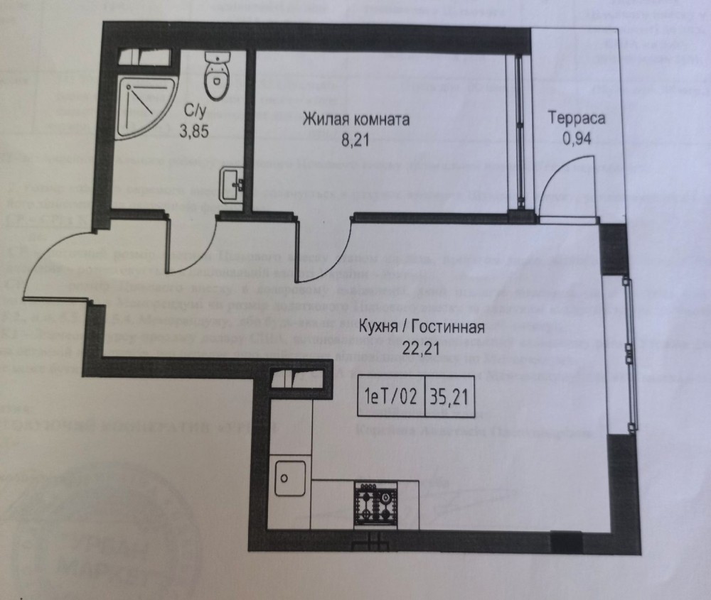 • Загальна площа 35 м2
