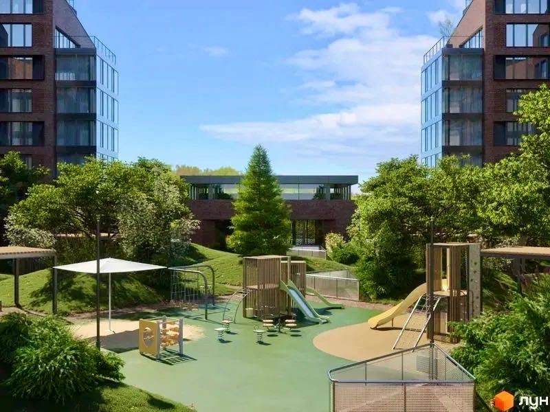• Двір-променад з дитячим майданчиком та зоною для активностей