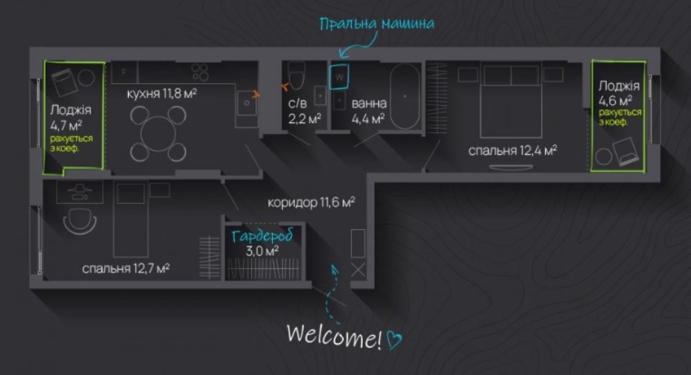 • Загальна площа 60 м2