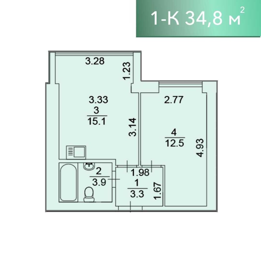 • Загальна площа 33.4 м2