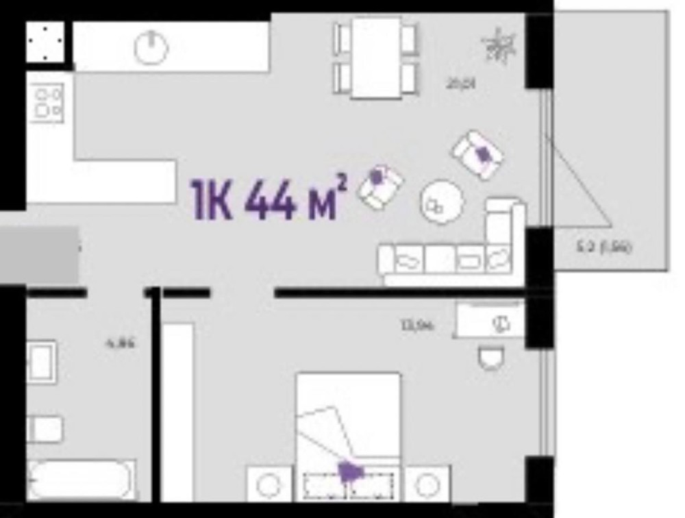 • Загальна площа 44 м2