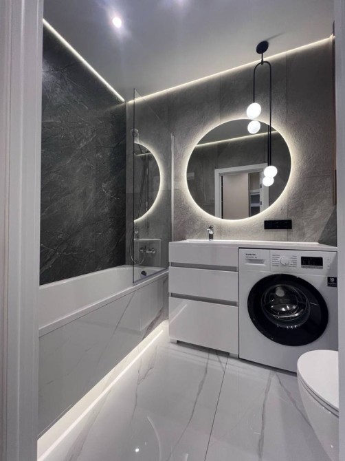 ліжко, кухня, техніка: посудомийка, духовка, варка, пральна машина.