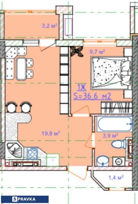 • Загальна площа 36 м2