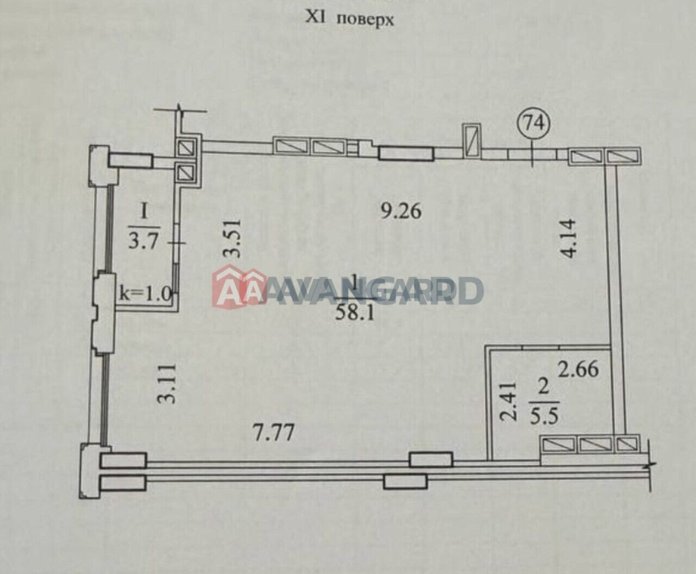 Висота стелі — 3 м