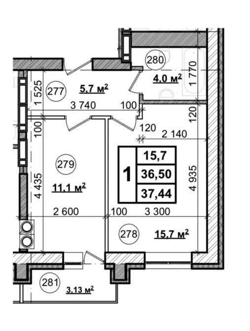 • Загальна площа 37.44 м2
