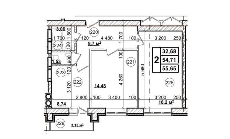 * 2-кімнатні 55,65 м² — $36500