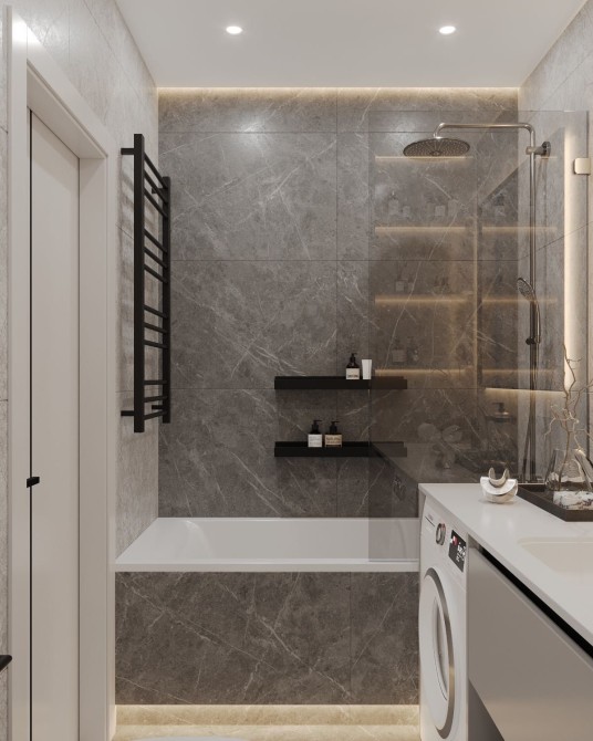 • закуплена кухня, стільці, ванна, умивальник, рушникосушка, світильники.