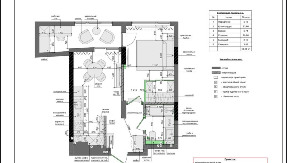 • Загальна площа 42.18 м2