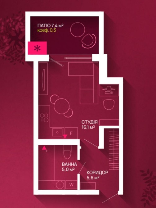 • Загальна площа 29 м2