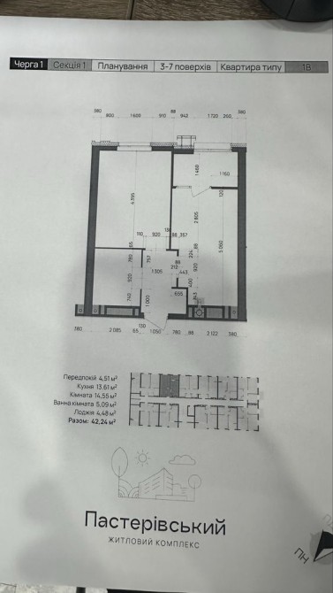 Площа — 42,24 м², поверх — 5.