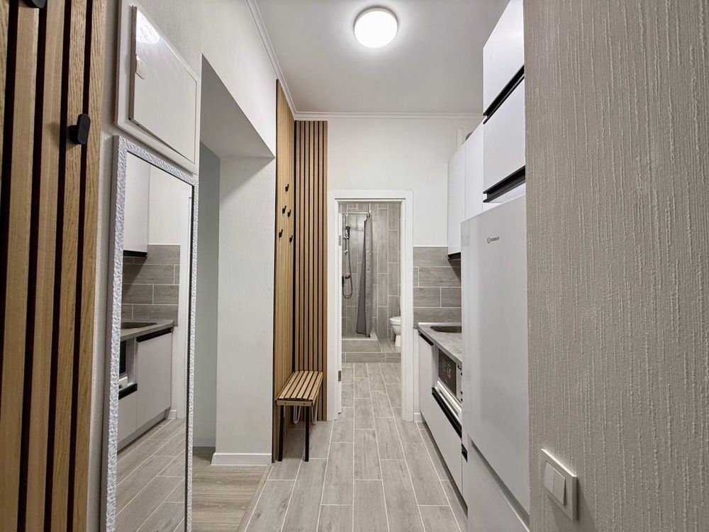 В квартирі виконаний якісний дизайнерський ремонт. Сама квартира дуже тепла, з усіх сторін заселені квартири. Повністю мебльована, є вся побутова техніка, сучасний інтер'єр.