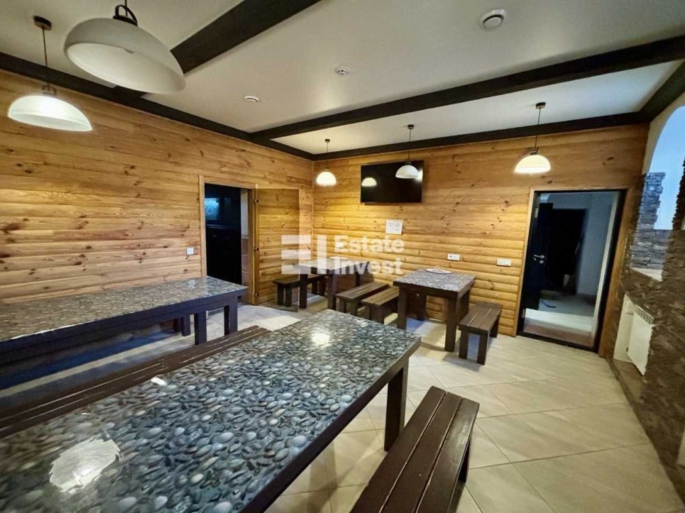 Пропонуємо вашій увазі готель "Friend’s House", який знаходиться у Поляниці (урочище Стаїще). Він складається з двох будинків. По праву сторону розташований перший будинок, побудований у 2007 році, та по ліву сторону - другий, збудований у 2018 році. Земельна ділянка становить 0.054 га. Другий будинок має чотири повноцінних поверхи та п'ятий мансардних. Загальна площа складає 295 кв. м. Він зведений на бутобетонному фундаменті, з монолітним каркасом, колони якого заповнені керамблоками. Тип перекриття дерев'яні балки. Дах будинку вкритий металочерепицею, та утеплений мін ватою товщиною 20 см. Стіни також утеплені пінопластом товщиною 10 см. Будинок має три входи з металопластиковими дверима. По всьому будинку встановлені двокамерні енергозберігаючі вікна металопластикові. Підлога в житлових кімнатах (номерах) викладена ламінатом, у коридорах, санвузлах та допоміжних приміщеннях - плиткою з підігрівом. Опалення здійснюється твердопаливним котлом на пелетах потужністю 45 кВт (приблизний розхід пелетів - 10 тонн за сезон) та електрокотлом потужністю 12 кВт, який має два режими роботи: 6 кВт і 12 кВт. Також на четвертому поверсі знаходиться комін. Вода подається від резервуара об'ємом 30 тонн, який автоматично наповнюється зі скважини або криниці. Також встановлені фільтри для очищення води. На гарячу воду встановлений бойлер на 500 л. На передньому подвір'ї розташовано автономний біосептик, який обслуговує два будинки. До готелю підведено 15 кВт електроенергії, а також є генератор на 30 кВт для трьох будинків. На першому поверсі, при вході, розташовано хол, кімнату для лижного спорядження, пральну кімнату, котельню та складське приміщення, яке можна в подальшому перебудувати за бажанням. На другому поверсі розміщено три номери: двомісний, тримісний та чотиримісний сімейного типу з двома кімнатами. На третьому поверсі аналогічно розташовані номери. На четвертому поверсі розташована їдальня з панорамним вікном, що має чудовий вид на гору Говерлу. Також тут знаходиться загальна кухня, кімната для персоналу, окремий санвузол та місце для будівництва сходів на п'ятий поверх. У кожному номері є санвузол та душова кабіна. Перший двоповерховий будинок має загальну площу 193 м2 та включає сім кімнат, кімнату для персоналу, велику їдальню та кухню загального користування. Три санвузли і котельня, де знаходяться твердопаливний котел (пелетний, дров'яний), бойлер на 300 літрів та електрокотел. Котельня також має вихід на внутрішній двір. На внутрішньому дворі знаходиться альтанка на пів відкритого типу, крісла-гойдалки, а також парковка на чотири авто. На передньому подвір'ї розташована парковка на сім авто. Ці два будинки огороджені брамою з фарбованої дошки. Готель має дуже гарні відгуки: на Google Maps 50 відгуків з середньою оцінкою 4,9 з 5, а на Booking - 14 відгуків з середньою оцінкою 9,8 з 10.