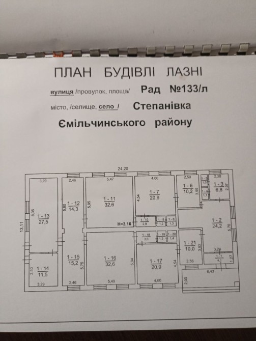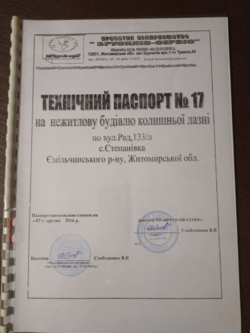 Продам нежитлову будівлю колишньої лазні, площа 244 кв/м, фундамент бетонний, стіни цегляні, перегородки цегляні, підлога бетонна (плитка), перекриття з/б плити, дах крокви з колод обрешітка з дощок покрівля азбофанера. Адреса с.Степанівка Житомирська область.