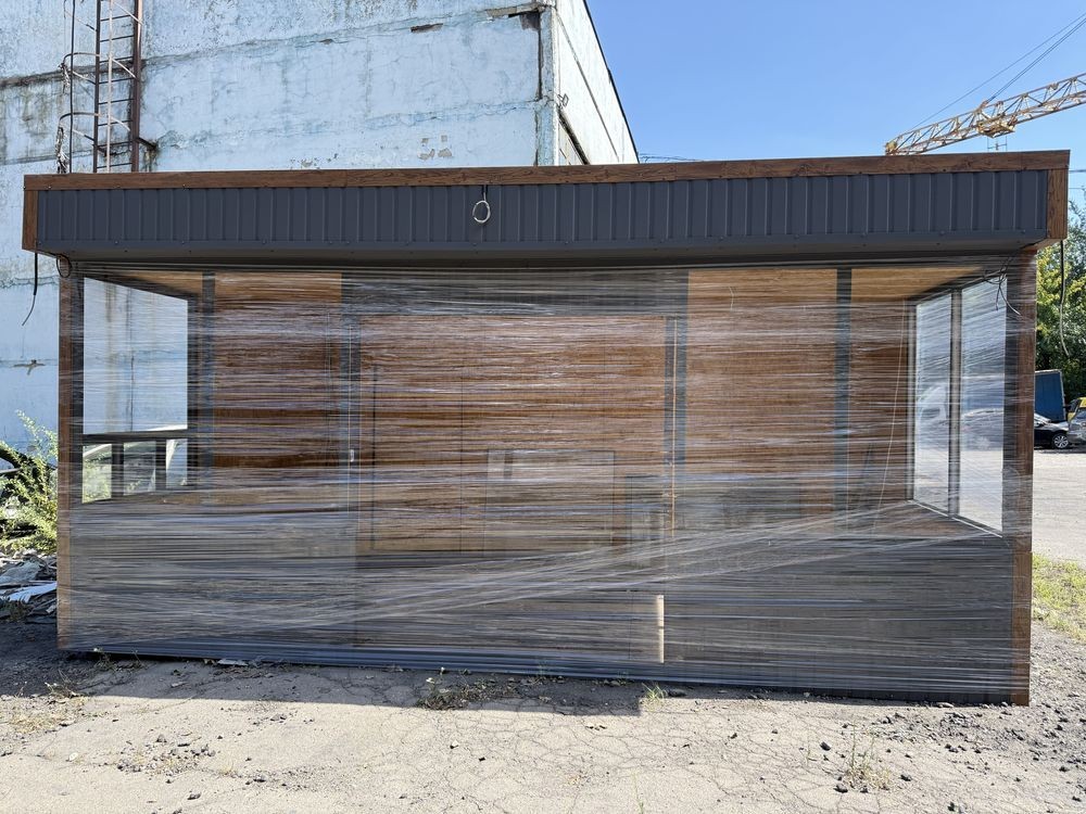 Стоит на площадке, готов к транспортировке, все стекла сняты, двери двойные с ламинацией и дорогой фурнитурой, устанавливаются уже после транспортировки