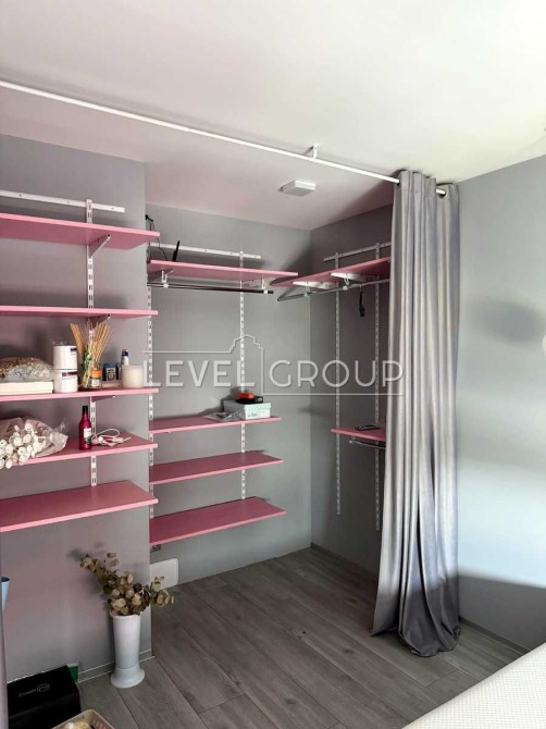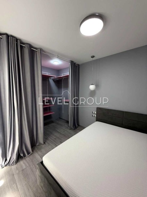 У спальні відокремлений гардероб. Кухня по дизайн-проекту.