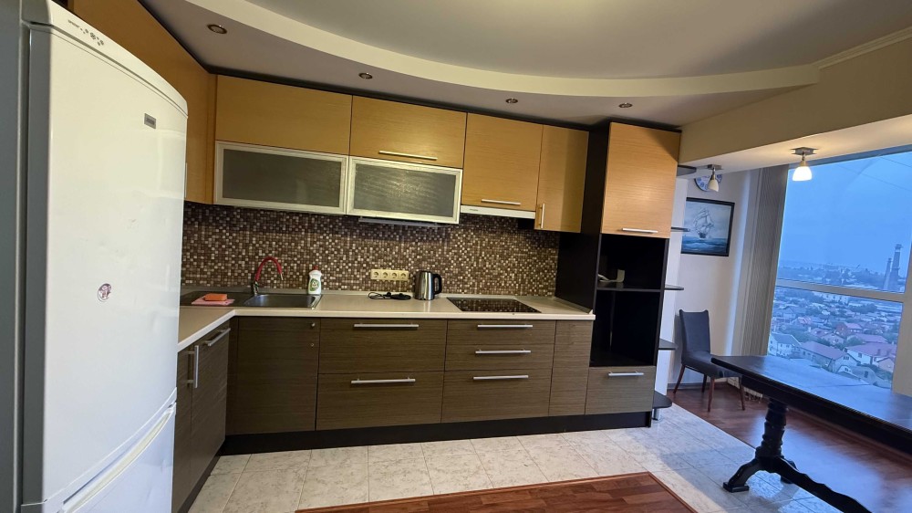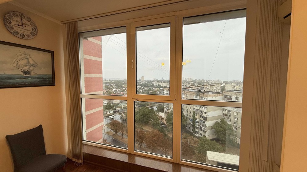 Квартира тепла та затишна. По всій квартирі панорамне скління вікон із шикарним видом на місто та море. Санвузол суміщений ,встановлено новий лічильник . Квартира обладнана бойлером та кондиціонерами. Виконано якісний ремонт із вмонтованою кухнею. Капітальний тамбур, просторий та чистий.