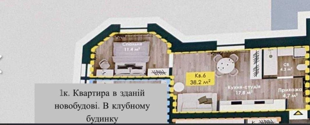 Загальна площа 38,2 м2.