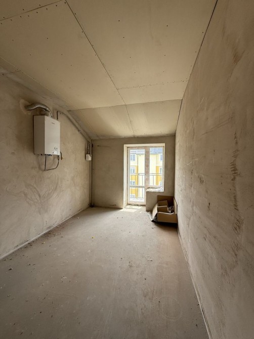 В квартирі зроблена стяжка підлоги, чорнова штукатурка стін та встановлений двоконтурний газовий котел