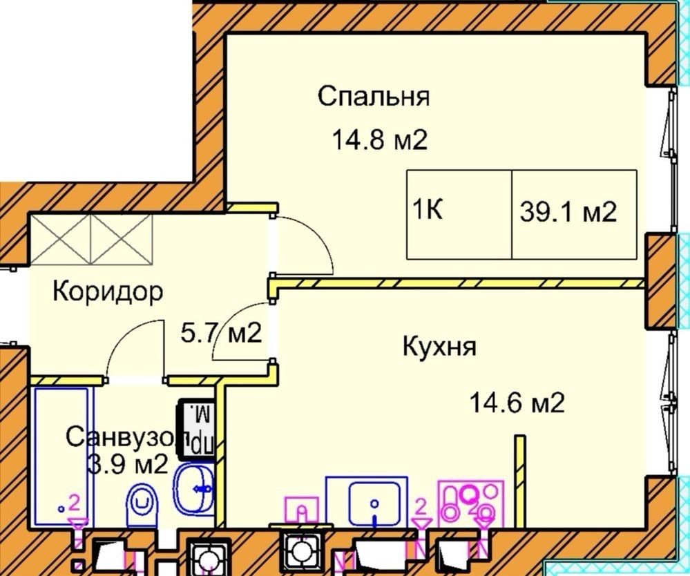 • Загальна площа 39.1 м2