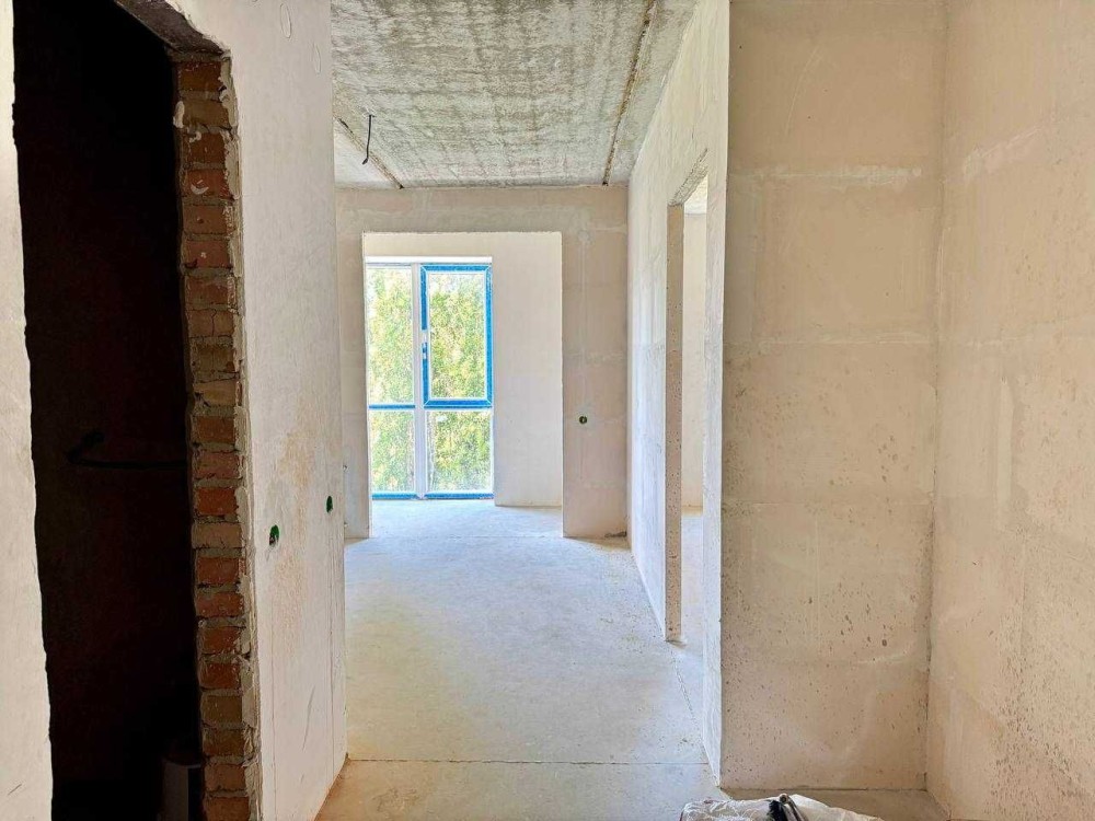 Виконано усі чорнові роботи (чистова стяжка, гіпсова штукатурка стін, розведено електрику, водопостачання та каналізацію).