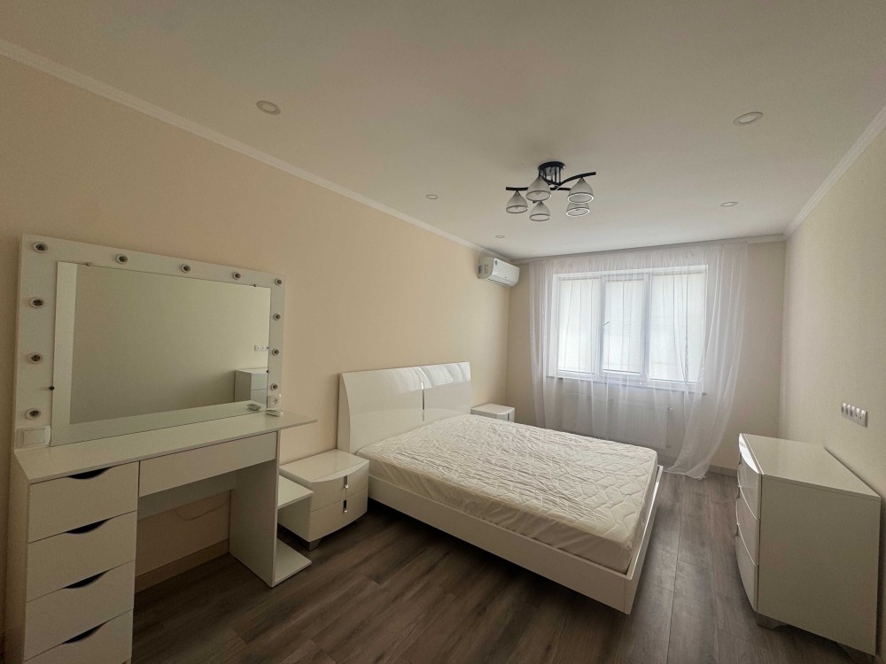 Продаж 1-к квартири вул. Кам'янська 128. м. Вирлиця 5 хв. Ремонт у світлих тонах, вікна підлоги, стелі 3 метри. Продаж з меблями та побутовою технікою. Гарний вид на Бажана проспект і озеро. Лічильник на тепло. Закрита територія. Поруч парк Партизанської Слави. 044 200 10 80