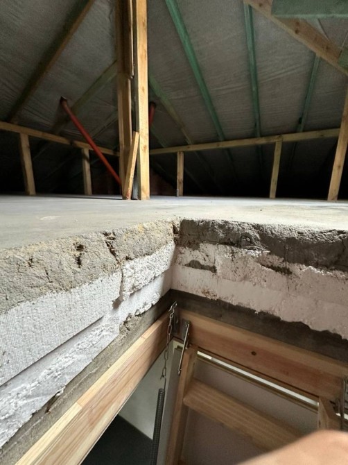 - перекриття панельне ,утеплене 200мм пінопластом та залита на горищі чистова стяжка