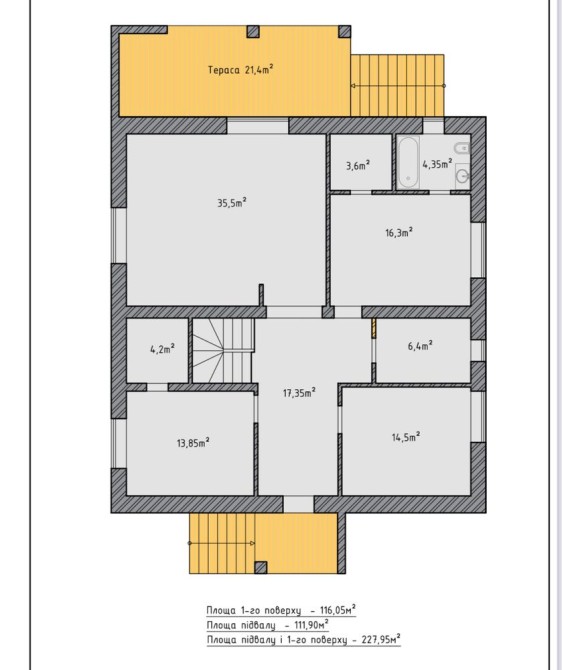 Будинок одноповерховий на 128 м2, стіни готові під чистове оздоблення. З підвальним приміщенням на весь будинок
