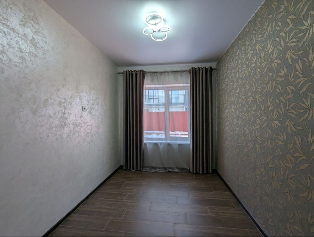 Стан: декоративна штукатурка, одна стіна- шпалери, керамічна плитка, розведено теплу підлогу по всьому периметру.