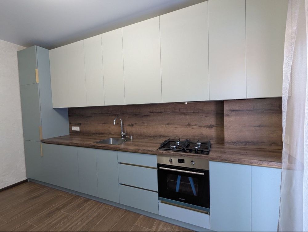 Вбудована кухня, духова шафа, варильна панель, витяжка, вбудований холодильник шафа під посудомийку.