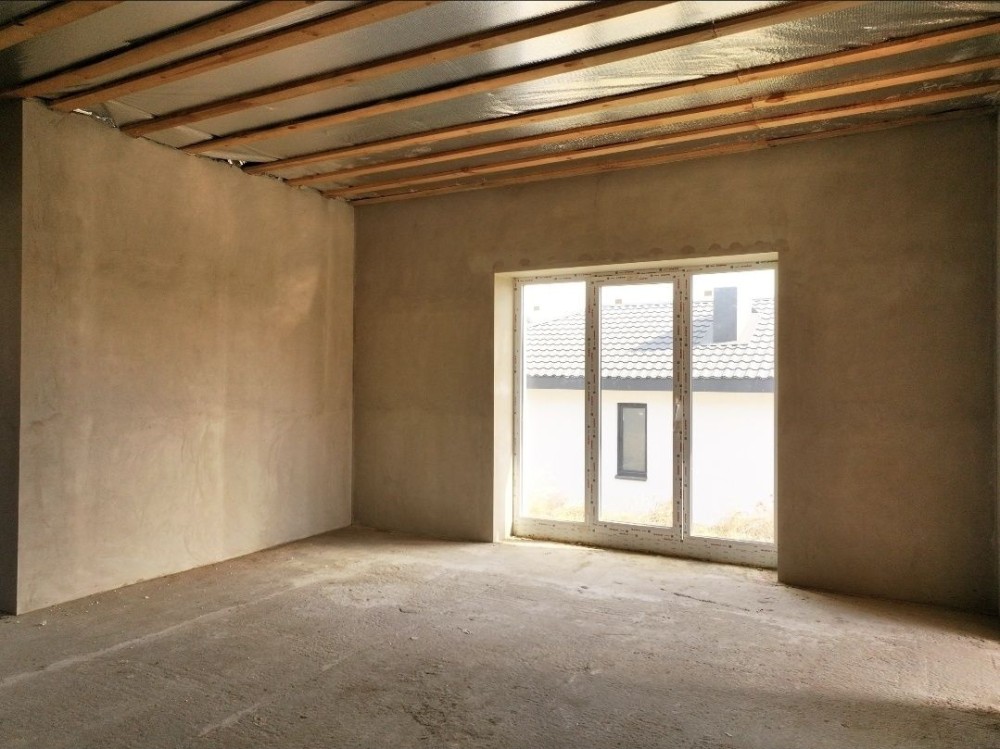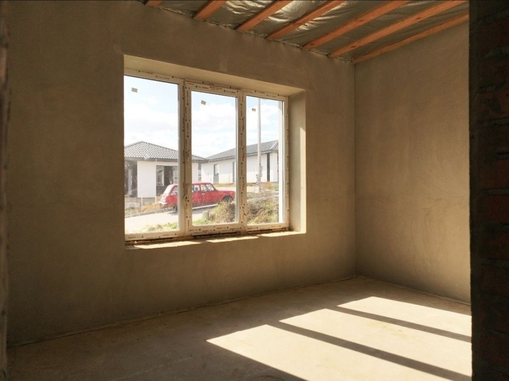 Кухня-вітальня 27 кв.м, три окремі кімнати (батьківська з гардеробною), ванна кімната з вікном, прихожа, горище