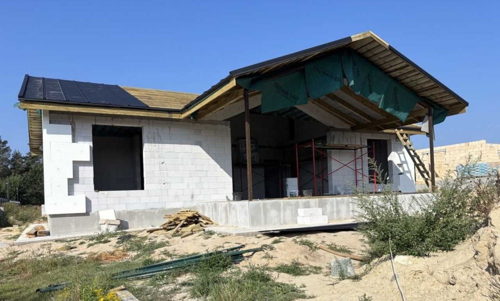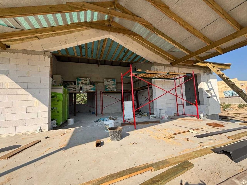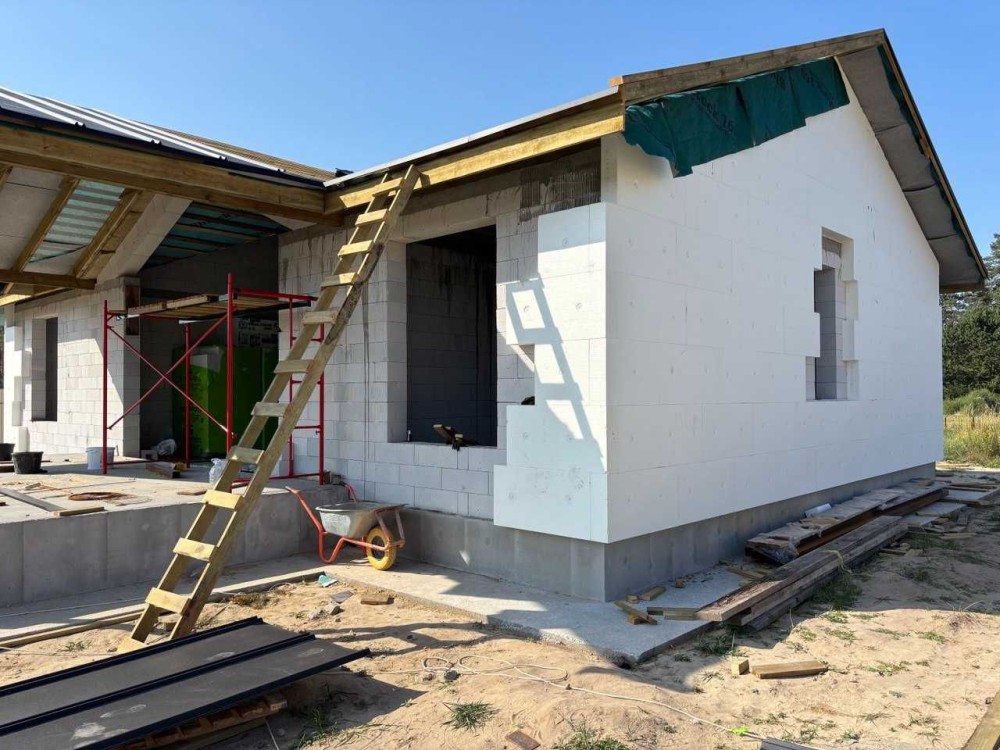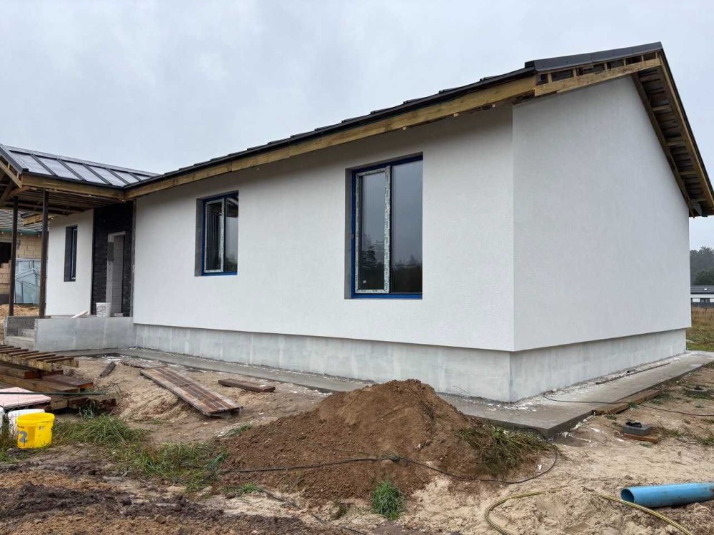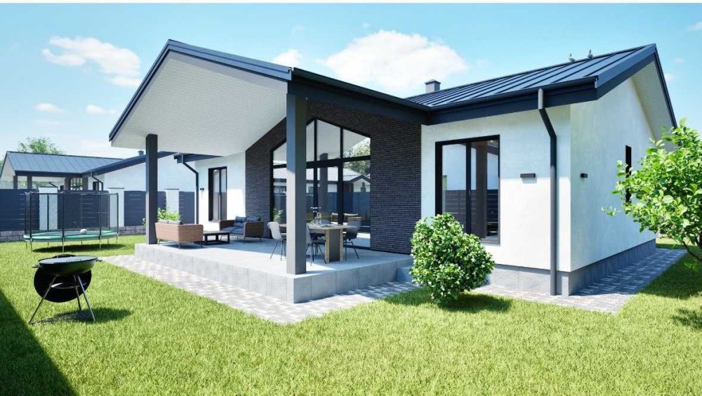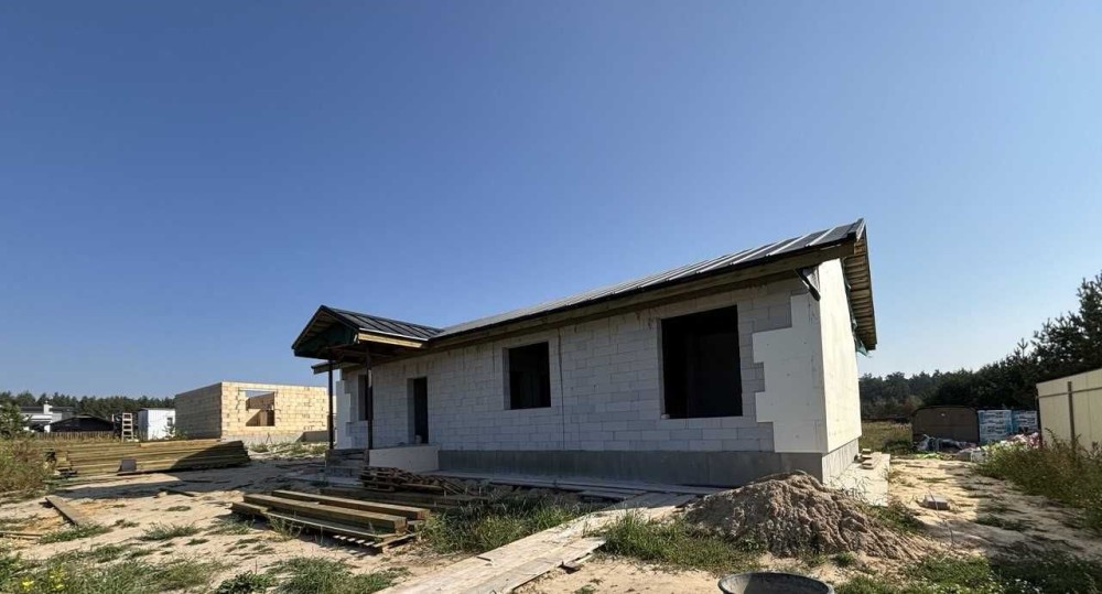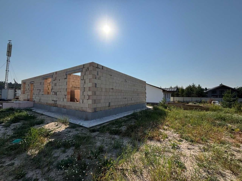 Чудова актуальна пропозиція для тих, хто бажає проживати в окремому будинку. Бровари, "Поляна 2". Пропонуємо універсальний будинок, спроектований продумано і дуже зручно, функціонально та комфортно. З головної вітальні, яка може бути і гостьовою чи обідньою зоною, є вихід на простору терасу і задній двір. Сама вітальня має високу подвійну стелю з вікном на дах. Вона ж слугує зоною розподілу між батьківською та дитячою частинами будинку. В кожній частині є свої с/в, гардеробна. Зручна кухня з вікном має 2 окремі комори на всі потреби. З головного входу від вулиці є прихожа та госп. блок. Все продумано до дрібниць. Головна перевага - будинок одноповерховий, оптимальна площа - 143 м2 (див.фото плану), площа даху 270 м2, дах високий, можна там ще облаштувати додаткове приміщення; товщина стін 40 см (є варіант з газоблоку і керамоблоку), утеплення 15 см, стелі 20 см, дах - металеві листи. Фундамент більше 2-х метрів, армований, бетонний - будинок високий. Свердловина на рівні "Полтава", септик з переливом на 12 м3, електрика 12-15 квт, 3 фази, куплена вже. Ділянка прямокутна, підсипана, огороджена, площа більше 5 соток. На фото процес будівництва, можна обирати вже зараз, на цьому етапі можлива знижка .Ціна 160 тис.у.о., торг.