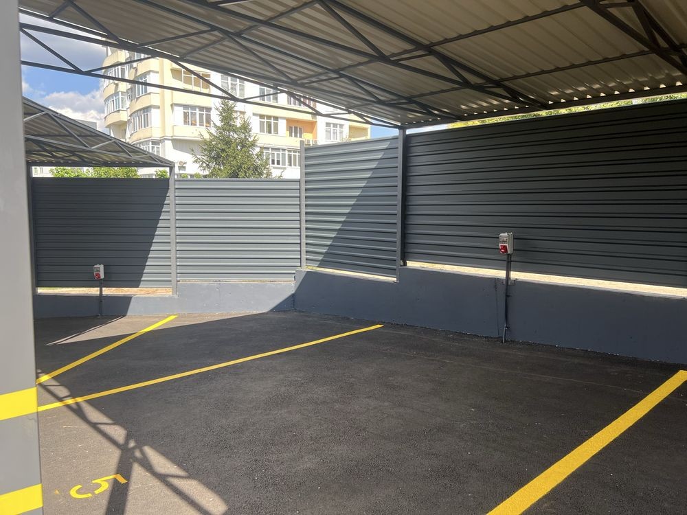 Огороджена парковка з цілодобовою охороною і шлагбаумом, що відкривається персональним пультом.