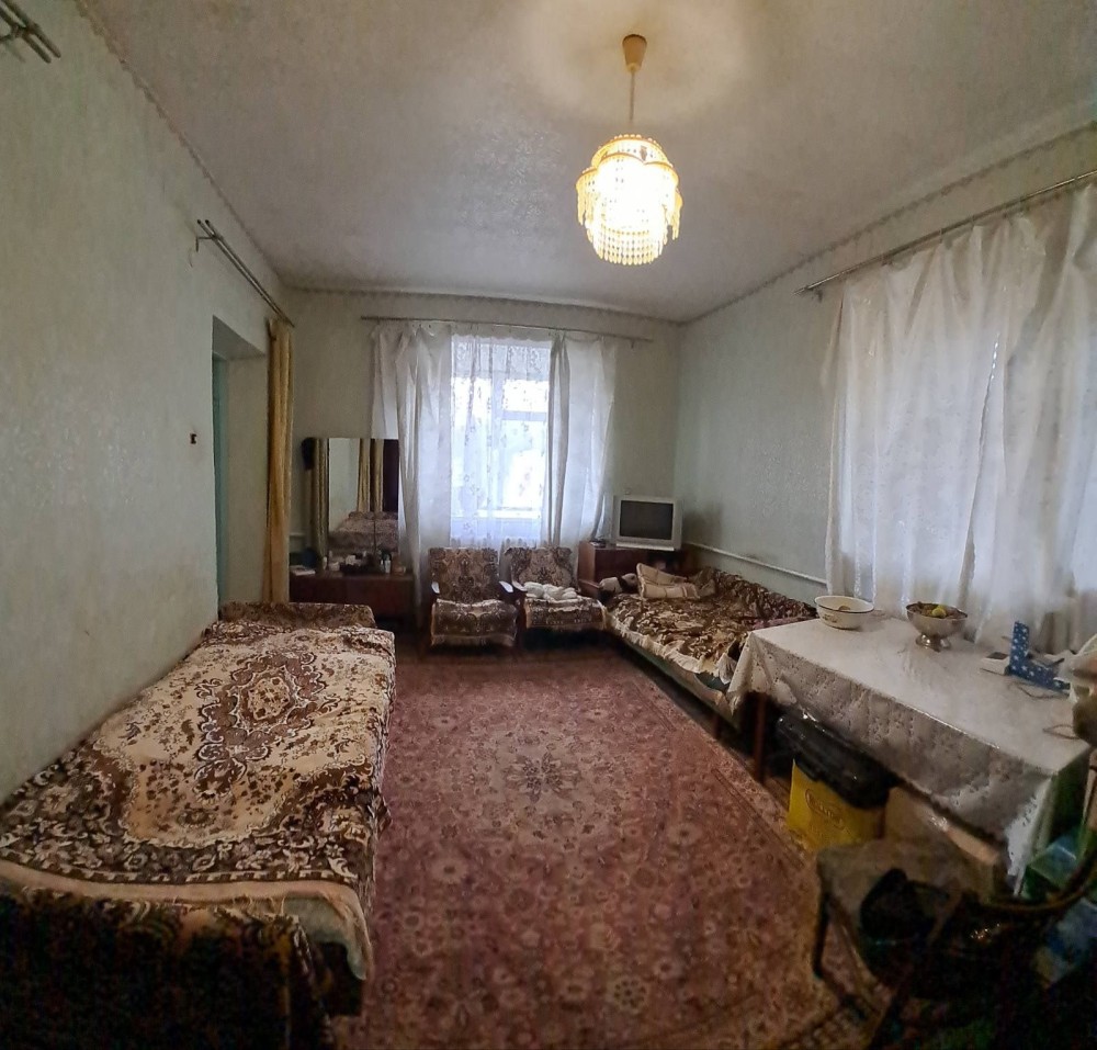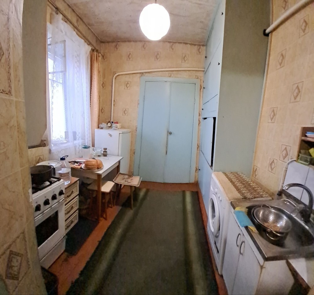 Дом находится в черте города.Дом высокий.Имеется отдельный участок земли кроме участка земли возле дома.Отдельнвй двор огорожен забором.Есть погреб и летняя кухня с газом.