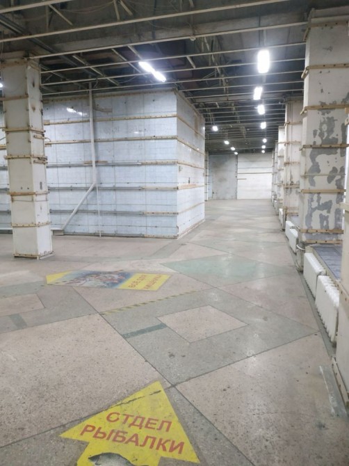 общая площадь - 1200м² (торговая площадь – 425м² (высота 3,8м), есть въездная загрузочно-разгрузочная рампа и складские помещения – 500м² (высота 3,0м), есть административные помещения – кабинеты