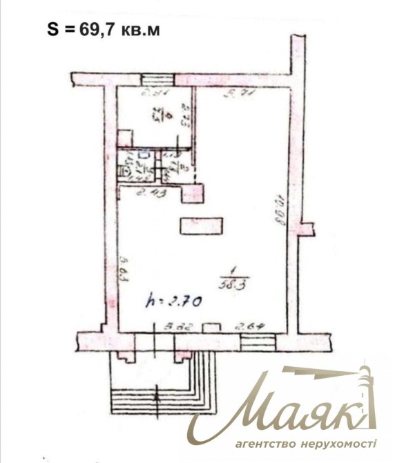Загальна площа -69.7 кв.м