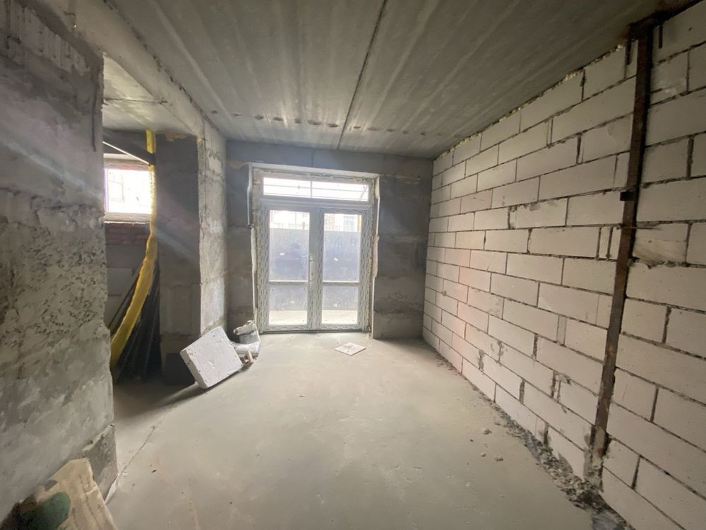 66,3 м2 ціна 700$/м2 = 46 410$. Вікна і вхід виходять на вул. Амосова.