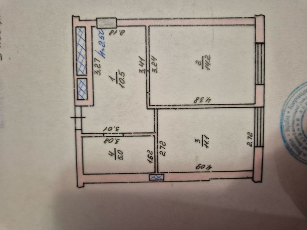 Загальна площа 41м2, житлова 14.2м2,