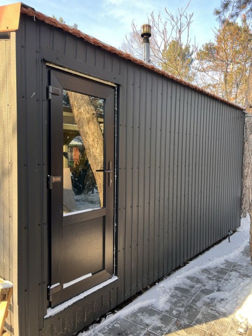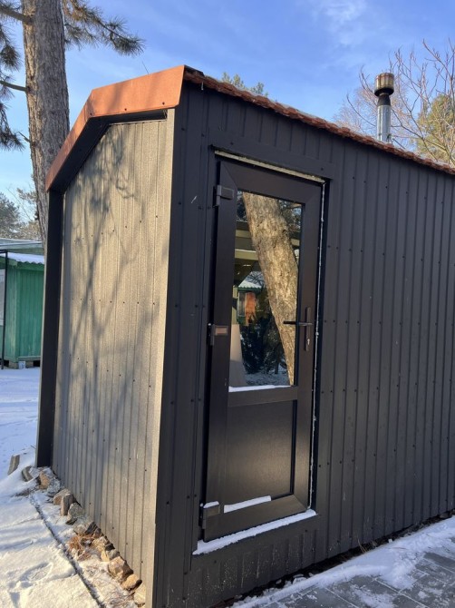 Модульна сауна із хоз блоком, загальні розміри 4*2м. Розмір парної 2*2, розмір хоз блока 2*2м(можно переоборудовати під будь які потреби). Монтаж на вашій ділянці за один день. Вже прогріта та повністю готова до використання. За більш детальною інформацією дзвоніть або пишіть!