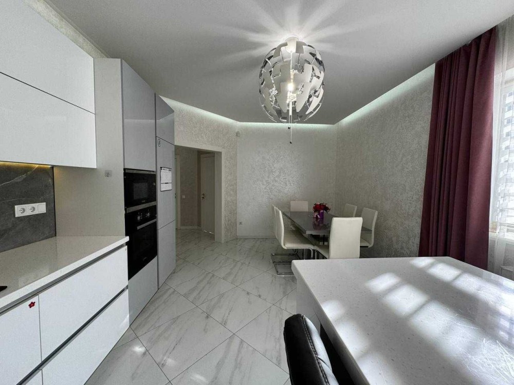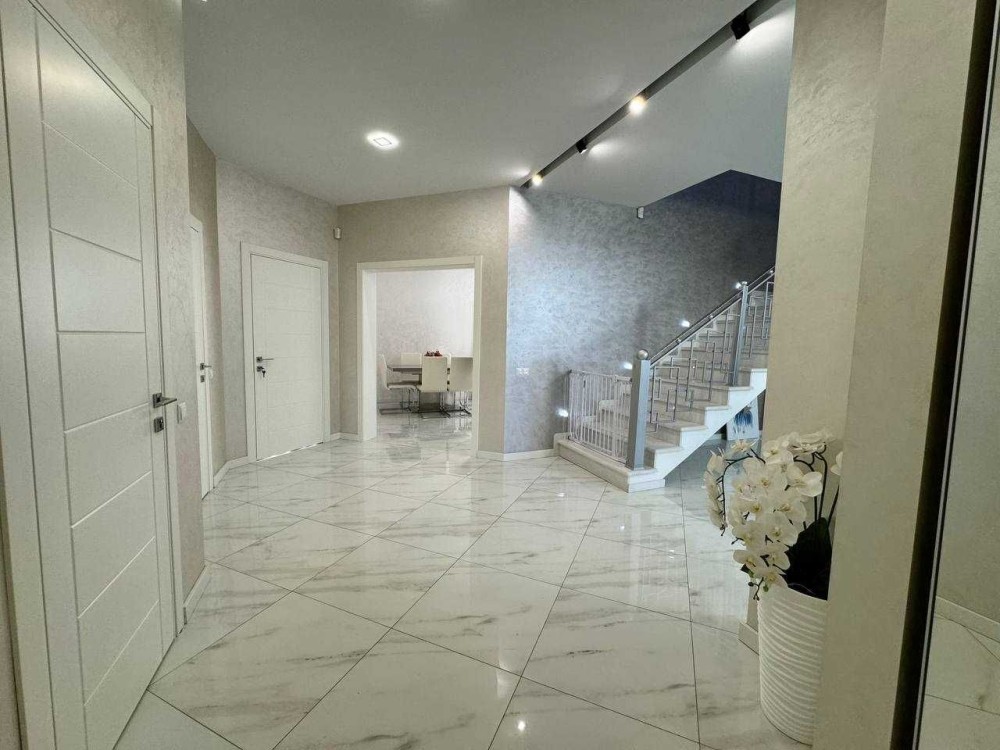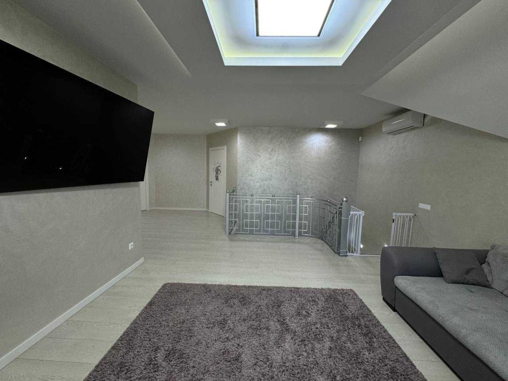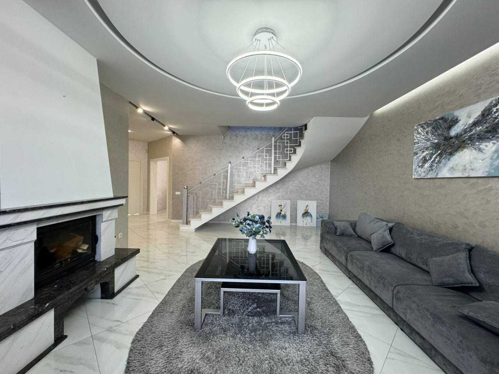 Загальна площа 220м2 (3 окремі кімнати, гардеробна кімната, 2 вітальні зони, одна з яких з діючим каміном, кухня-столова, 2 ванні кімнати та котельня з входом у підвал, гараж)