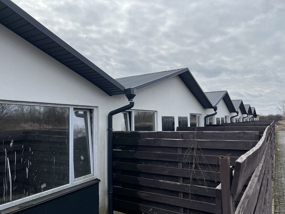 Небольшой городок на 2х га земли, в каждом доме по 17м2студия + дворик . Или есть вариант 34м2 отдельно кухня и комната и большой дворик . Дома сдаются с внешней отделкой, металлопластиковыми окнами, металлическими входными дверями, подведены коммуникации- центральное водоснабжение(скважина) , электрика 5кв,канализация, отопление электрическое.