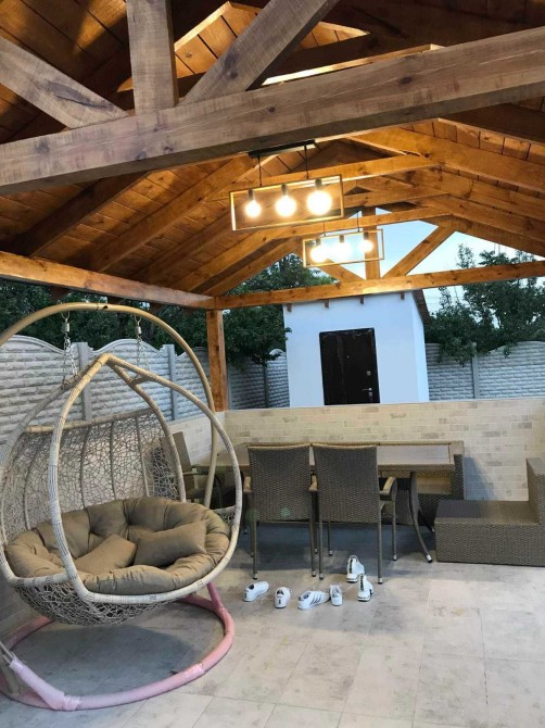 Земельный участок 5,5 соток, приватизирован, не угловой, огорожен по всему периметру. Во дворе комфортно отдыхать в крытой беседке, к ней подведено электричество, есть розетки и индивидуальное освещение. Двор выложен тротуарной плиткой, есть клумбы для цветов и растений.