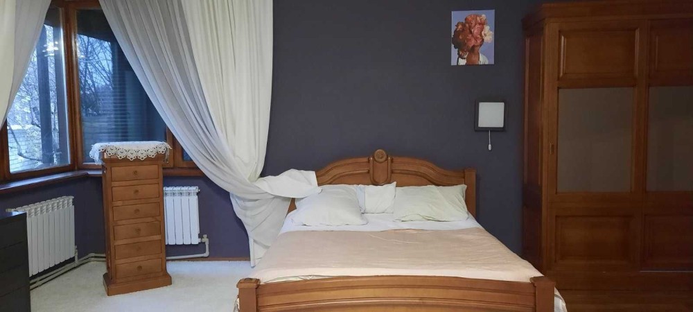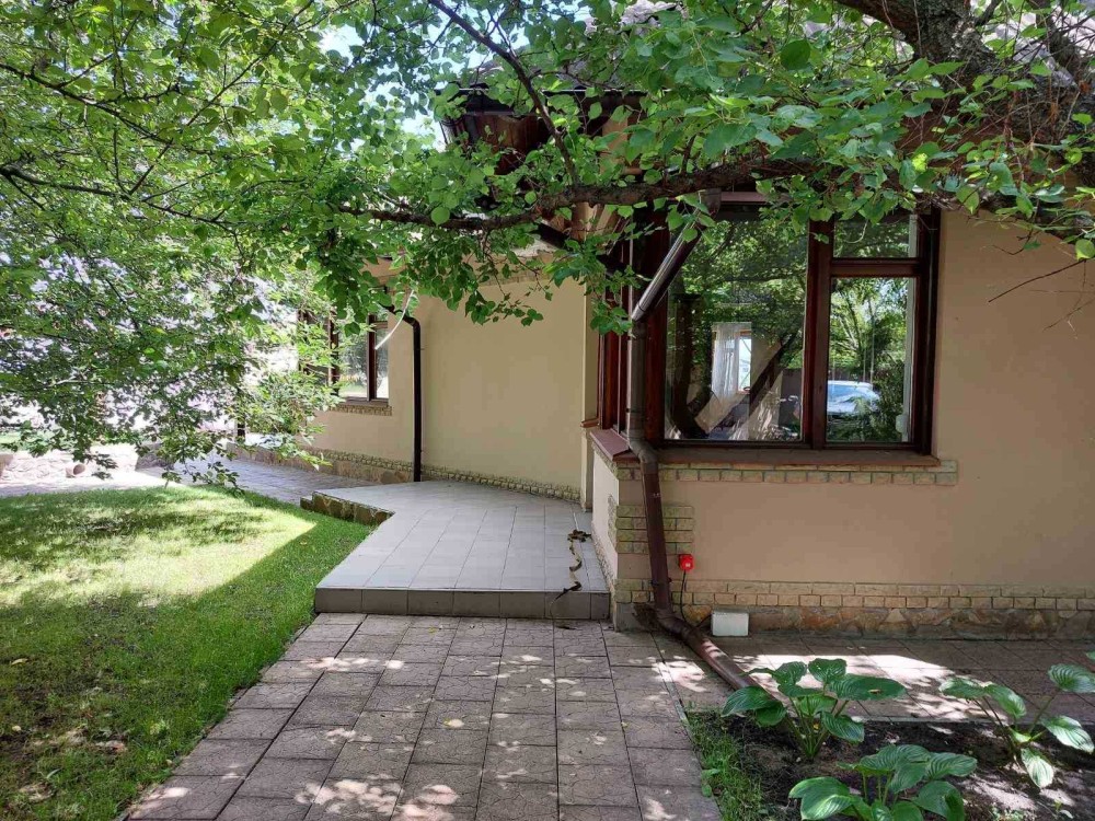Дом с уникальной архитектурой, просторный и светлый , три спальни, зал с огромным камином, кухня , два санузла, гардероб и небольшой спорза, бытовая комната, удобная грамотная планировка, все находится на одном этаже, что очень удобно для семьи с маленькими детьми.. В доме огромные деревянные окна , а также два выхода на терассу. Дом полностью одноэтажный, что очень комфортно, с большим чердаком и отдельным подвалом, сигнализация и ролеты на окнах.