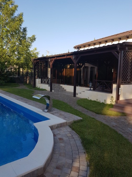 Продаю СВОЙ загородный дом 170 кв м. Дизайнерский проект, ландшафт, бассейн с противотоком, дизельгенератор, скважина, видеонаблюдение. Участок 40 соток, гостевой дом 70 кв м, полностью автономный.