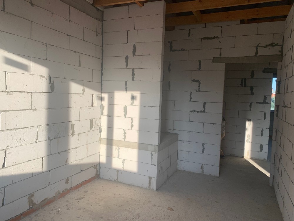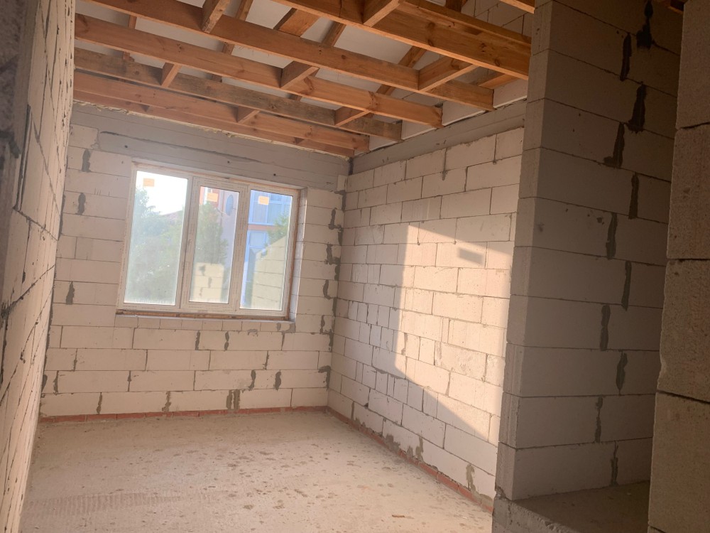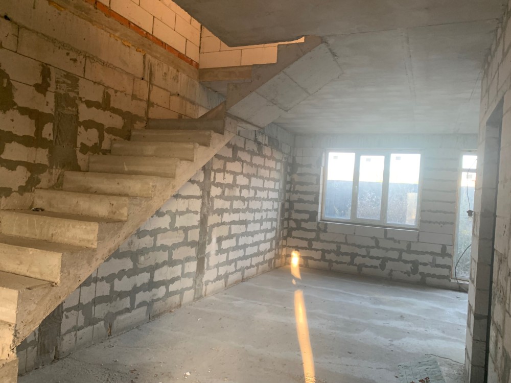 Стены газоблок, утеплитель пенопласт 10см., по фасаду - фасадная штукатурка, монолитное перекрытие, монолитная лестница, на полу стяжка, тип кровли металочерепица, окна REHAU, входные двери.