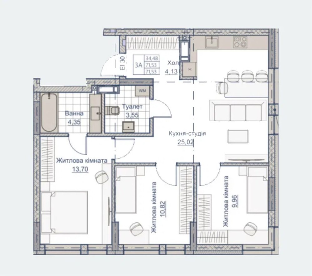 • Загальна площа 74 м2