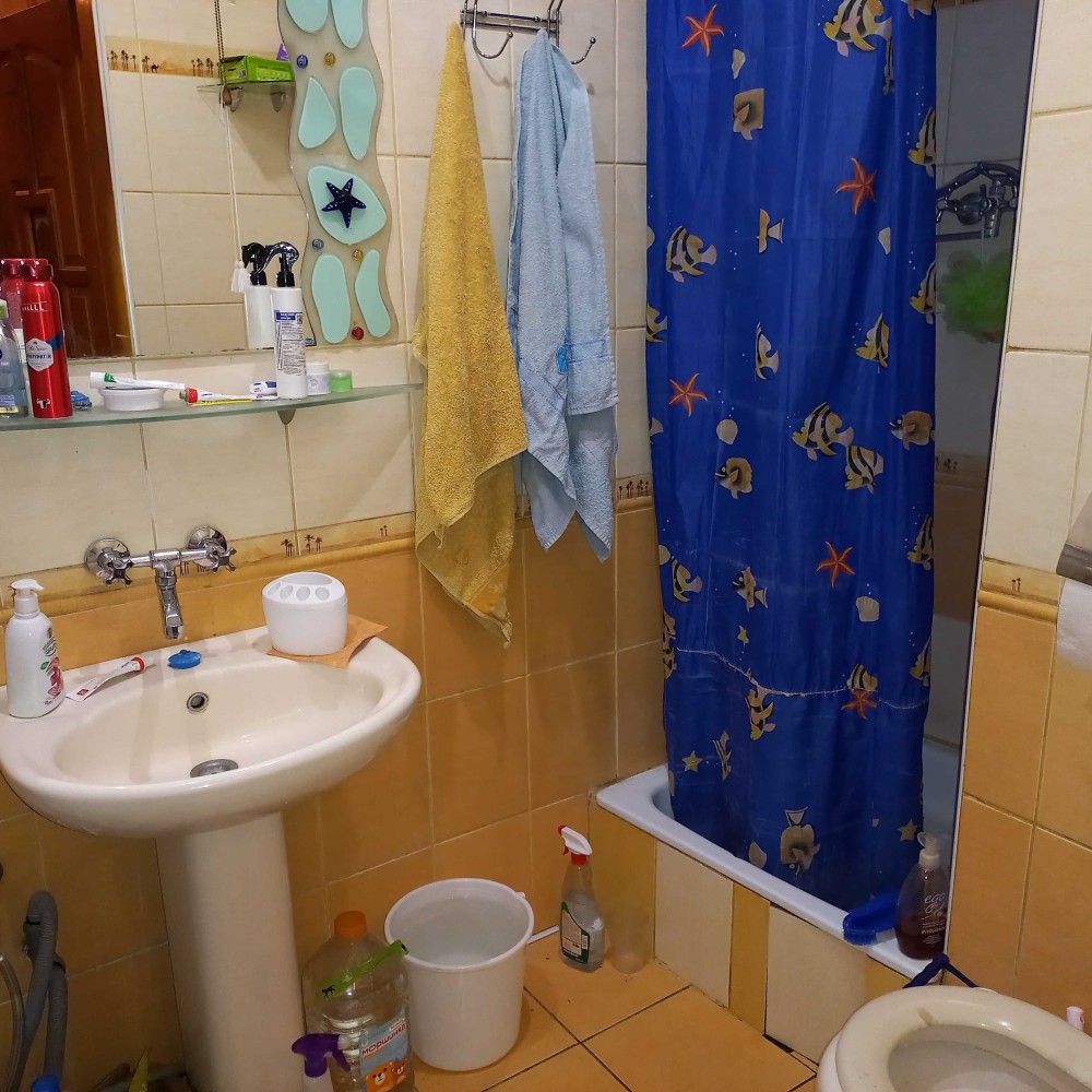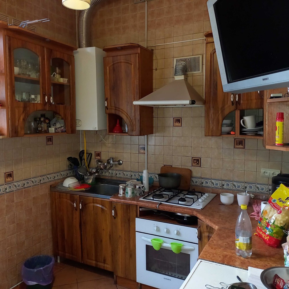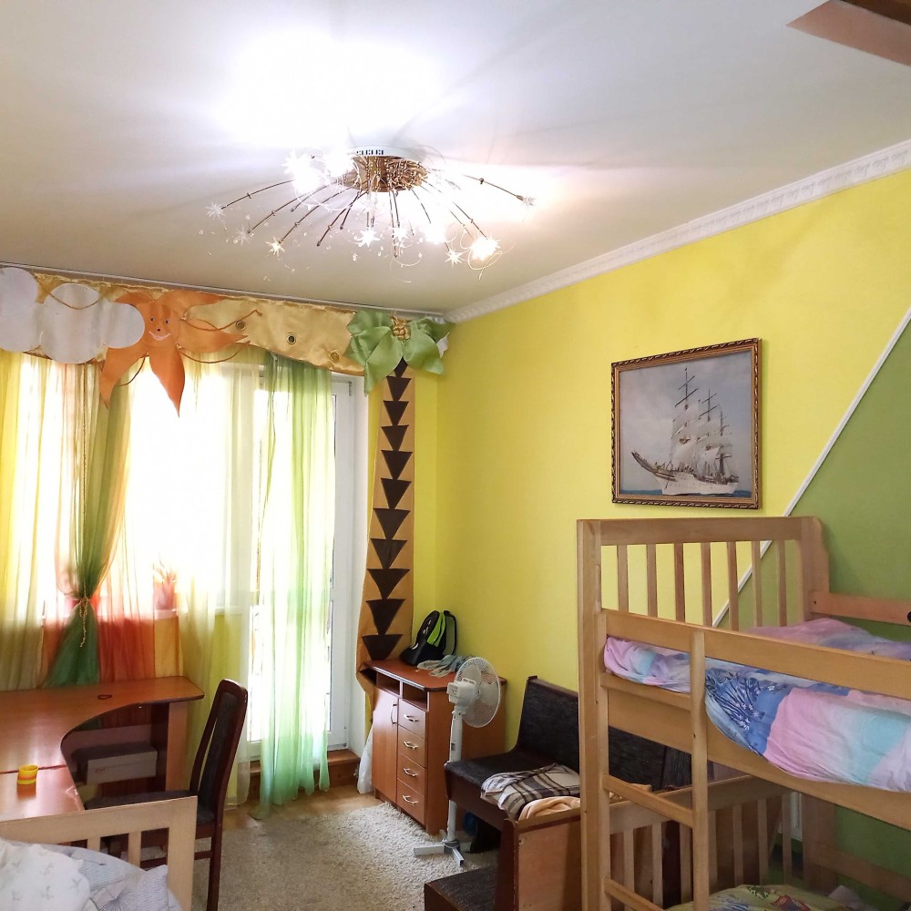 Трирівнева трикімнатна квартира. Кімнати ізольовані. Стіни гіпс. Підлога ламінат, плитка. Вікна – пластик. На 1-му рівні – коридор, кухня, кімната, гардероб і спарений санвузол. На 2-му дитяча + Велика лоджія, на 3-му спальня. Опалення автономне. Загальна площа – 84,8 кв.м. Житлова площа – 56,2 кв.м. Площа кухні – 9,7 кв.м. Ціна – 44 500 у.о. Торг