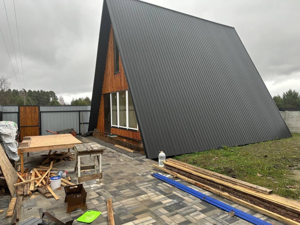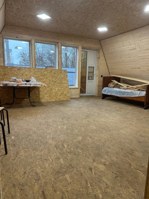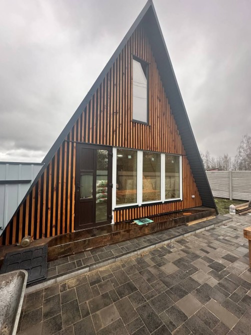 Продам будинок у формі трикутника, перший поверх розміром 6,4*8м, другий поверх 4,2*8м. На першому поверсі зроблена кімната, ванна кімната, кухня-студія. На другому поверсі дві кімнати. Зроблений з якісних матеріалів. Утеплений. До будинку асфальтований під'їзд, поруч магазин, маршрутка, озеро, ліс. Підведена та розведена по будинку електрика. Поруч є газ. Огороджено по периметру. Вкладена бруківка. Відкидні ворота. Локаційно при в'їзді на дачний масив Борківський (Кам'яна гора). Власник.